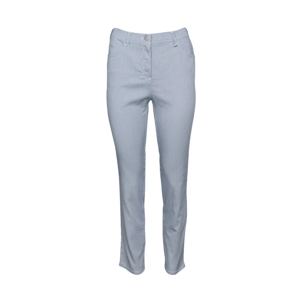 Ontdek de verfijning van deze lichtblauwe 7/8 broek met een relaxed fit van Relaxed by Toni. De subtiele streep geeft een klassieke uitstraling, perfect voor een frisse wandeling in de natuur. Gemaakt van een comfortabele cotton mix, die zorgt voor een zachte touch en optimale bewegingsvrijheid. De broek is voorzien van praktische zakken en een handige knoopsluiting.