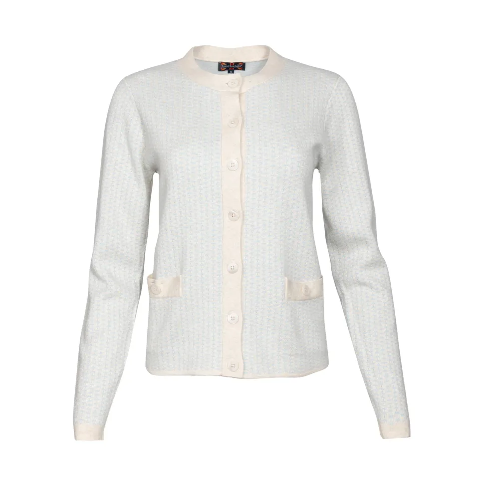 Cardigan ajour biedt een relaxed fit met een subtiel ajourpatroon dat zacht blauw en crèmekleurig combineert. Deze cardigan van John Bardale heeft een klassieke knoopsluiting en praktische zakken aan de voorkant. Gemaakt van 100% katoen, voelt het kledingstuk zacht aan en biedt het een comfortabele ervaring. De ronde halslijn en knoopdetails maken het tot een fijn kledingstuk voor een ontspannen dag buiten.