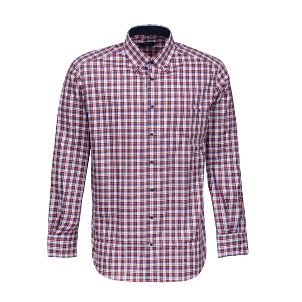 Ervaar comfort en stijl met dit geruite shirt van Eterna. Deze relaxed fit biedt bewegingsvrijheid en is gemaakt van 100% katoen, wat het perfect maakt voor elke buitenactiviteit. Het rood-witte patroon met subtiele blauwe details geeft een frisse uitstraling, terwijl de klassieke kraag en knoopsluiting zorgen voor een tijdloze touch.