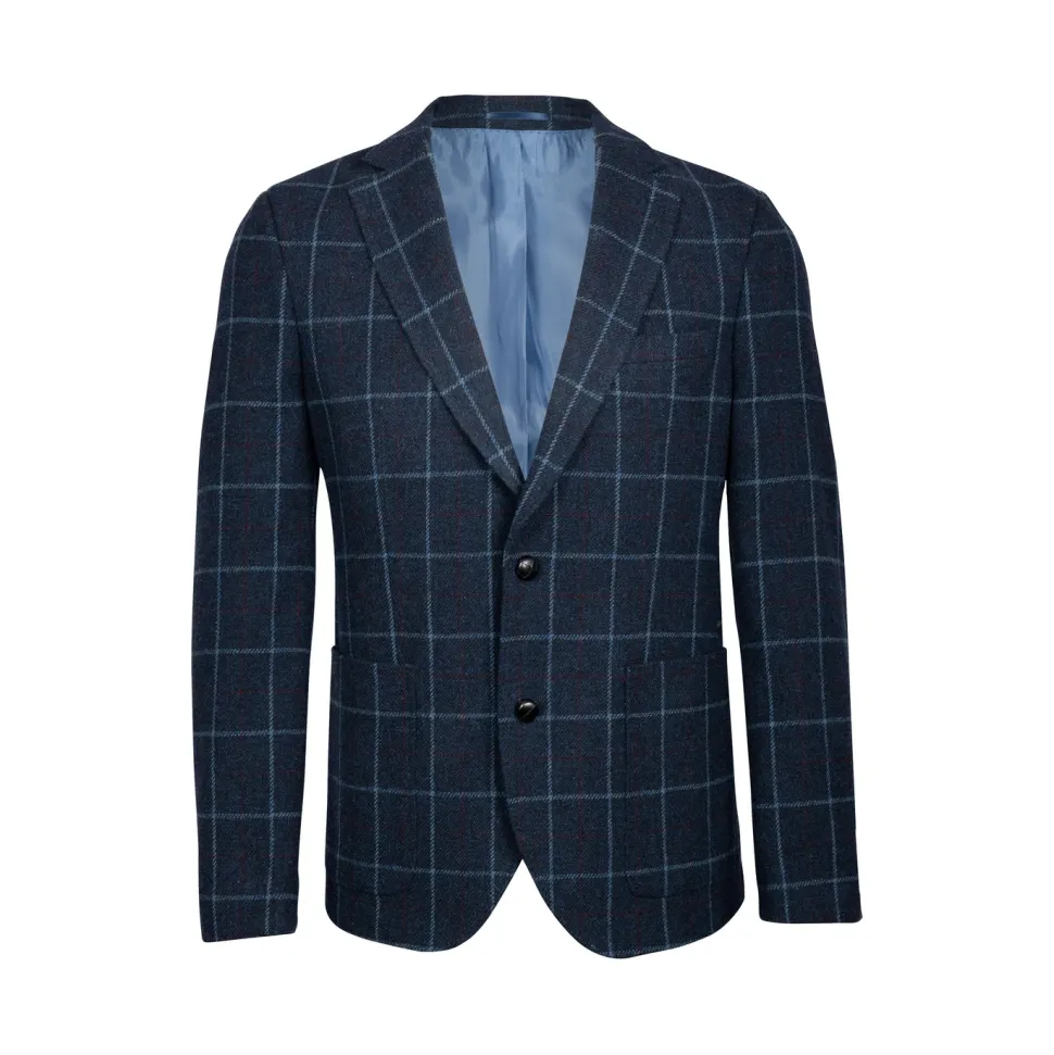 Deze relaxed fit blazer van John Bardale is een donkerblauw kledingstuk met een opvallend ruitpatroon. Gemaakt van hoogwaardig tweed, biedt het een klassieke uitstraling met een moderne knoopsluiting aan de voorkant. De zachte, ademende stof is perfect voor comfortabele dagen buitenshuis.