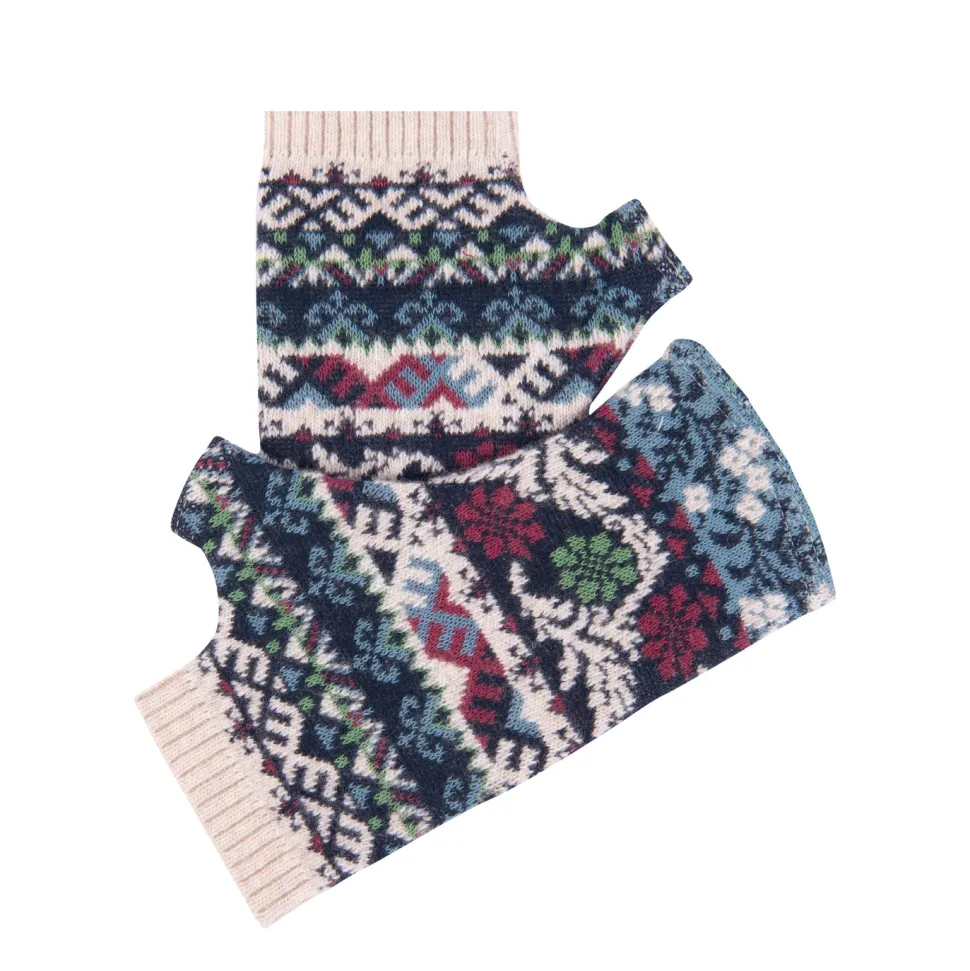 Ervaar het comfort van de Jacquard Fingerless Gloves van Dunque. Deze heerlijk warme handschoenen hebben een relaxed fit en zijn gemaakt van een hoogwaardige katoen/wol-mix. Het kleurrijke jacquardpatroon in tinten van blauw, groen, rood en beige voegt een speelse touch toe. De ribgebreide boorden zorgen voor een goede pasvorm en maken ze ideaal voor frisse wandelingen.