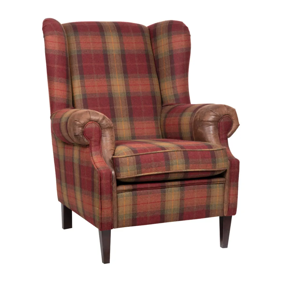 Verlies jezelf in de klassieke charme van de Kent XL Moon A, een verfijnd meubelstuk van John Bardale. Met zijn warme rode en bruine ruitpatroon, afgewerkt in luxueus tweed, weerspiegelt deze stoel tijdloze elegantie. De donkerbruine manchetten, vervaardigd uit artificial leather Gobi, voegen een extra vleugje klasse toe.