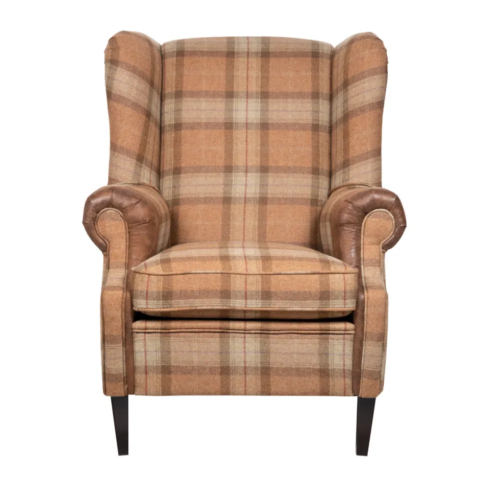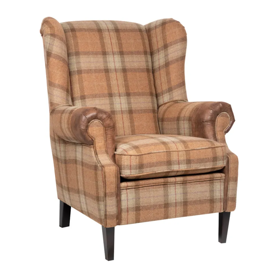 Ervaar het comfort van de Kent XL U1104-1. Dit klassieke meubelstuk van John Bardale is uitgevoerd in een warme, beige geruite tweed stof. De donkere kunstleren manchetten voegen een elegant accent toe. Met piping langs de randen en een indruk van tijdloze charme, nodigt deze stoel uit tot ontspannen momenten.