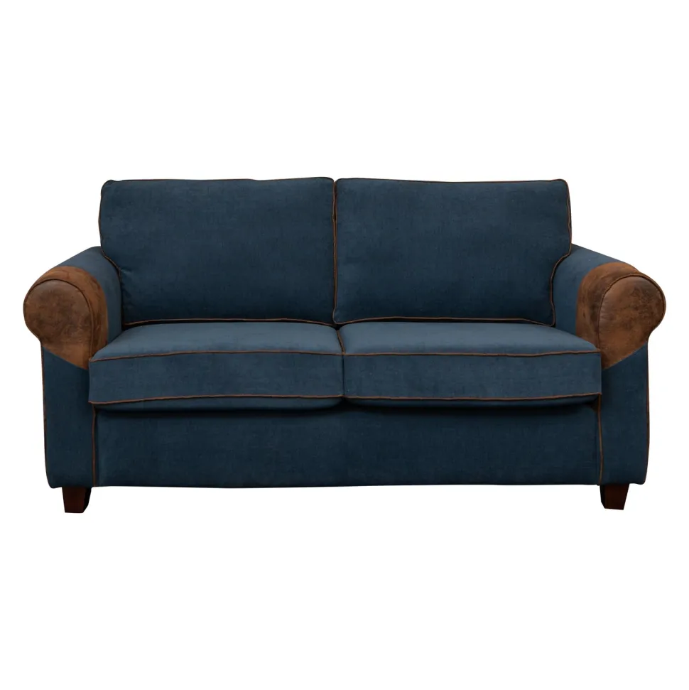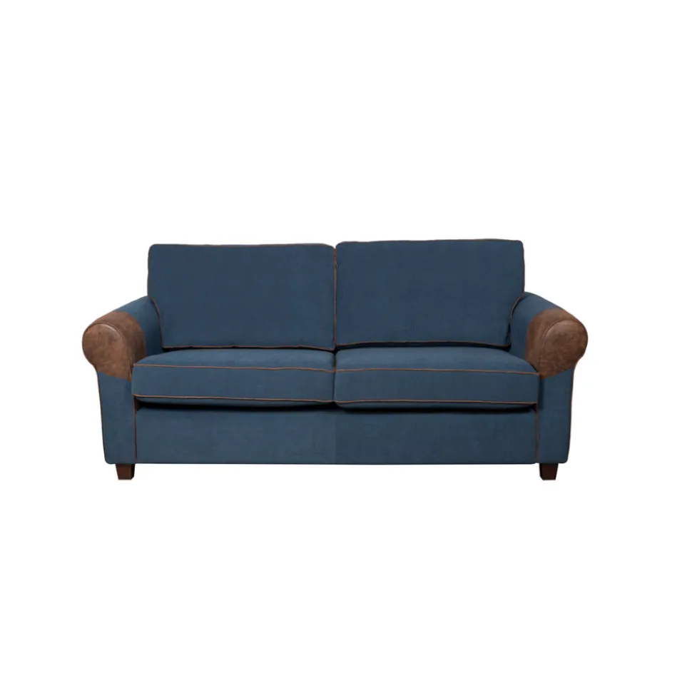 De Leeds 3-zits van John Bardale straalt met zijn stijlvolle blauwgrijze kleur en fijne piping. De Mystic stof is vlek- en vuilafstotend, oersterk en komt in meer dan 50 kleuren. Met donkerbruine artificial leather Gobi manchetten biedt het meubelstuk een klassiek accent. Het heeft een totale diepte van 88 cm, zitdiepte van 52 cm, zithoogte van 45 cm en uitneembare zit- en rugkussens. Leverbaar in alle stoffen, kom langs voor meer opties.