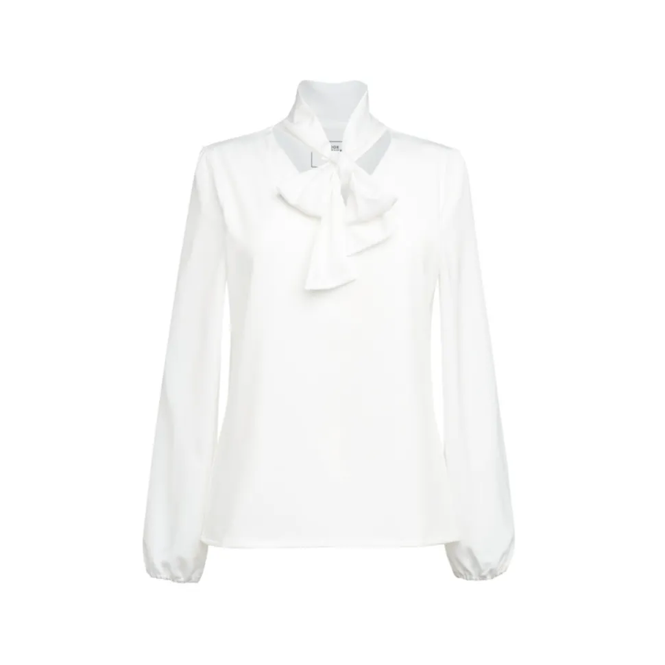 Dit lichte, polyester long sleeve shirt met een charmante strik voegt een elegante touch toe aan je garderobe. De relaxed fit zorgt voor comfort en bewegingsvrijheid, terwijl de lange mouwen een klassieke uitstraling bieden. Het effen witte ontwerp is veelzijdig en makkelijk te combineren met andere kledingstukken. De subtiele kraag en verfijnde afwerking maken het perfect voor zowel dagelijks als speciaal gebruik.