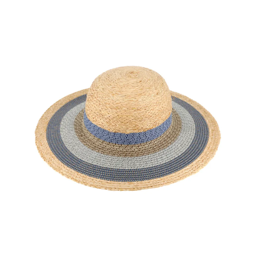 Deze prachtige hoed biedt een relaxed fit en heeft een speels streeppatroon in natuurlijke kleuren met accenten van blauw en grijs. Gemaakt van 100% papier, is de hoed lichtgewicht en ademend, ideaal voor lange dagen in de buitenlucht. De brede rand biedt extra bescherming tegen de zon, terwijl het ontwerp veelzijdig en tijdloos blijft.