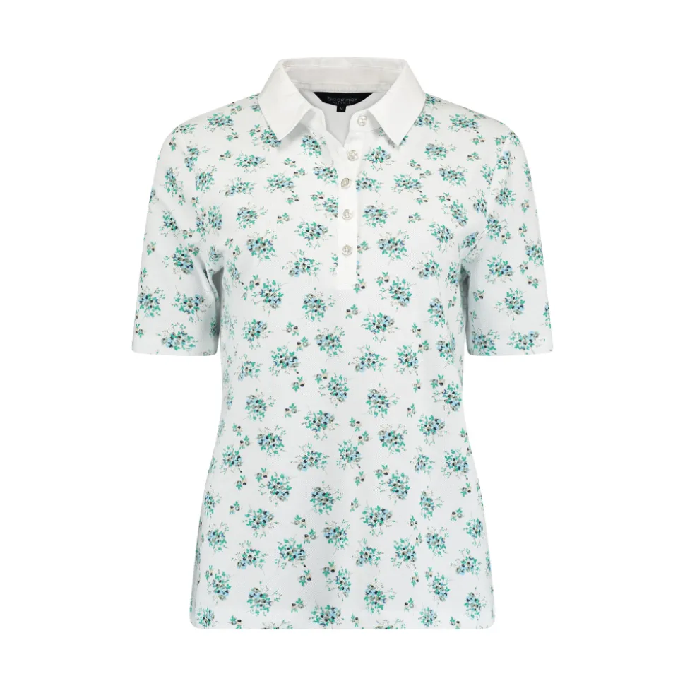 Laat je omringen door bloemen met de Polo bunch of flowers van Bloomings. Deze relaxed fit polo, uitgevoerd in een subtiele witte kleur met een fleurig bloemendessin, straalt eenvoud en charme uit. Gemaakt van kwalitatief hoogstaand cotton pique, biedt het niet alleen comfort maar ook een ademend vermogen. De klassieke kraag en knoopsluiting geven het een tijdloze uitstraling.