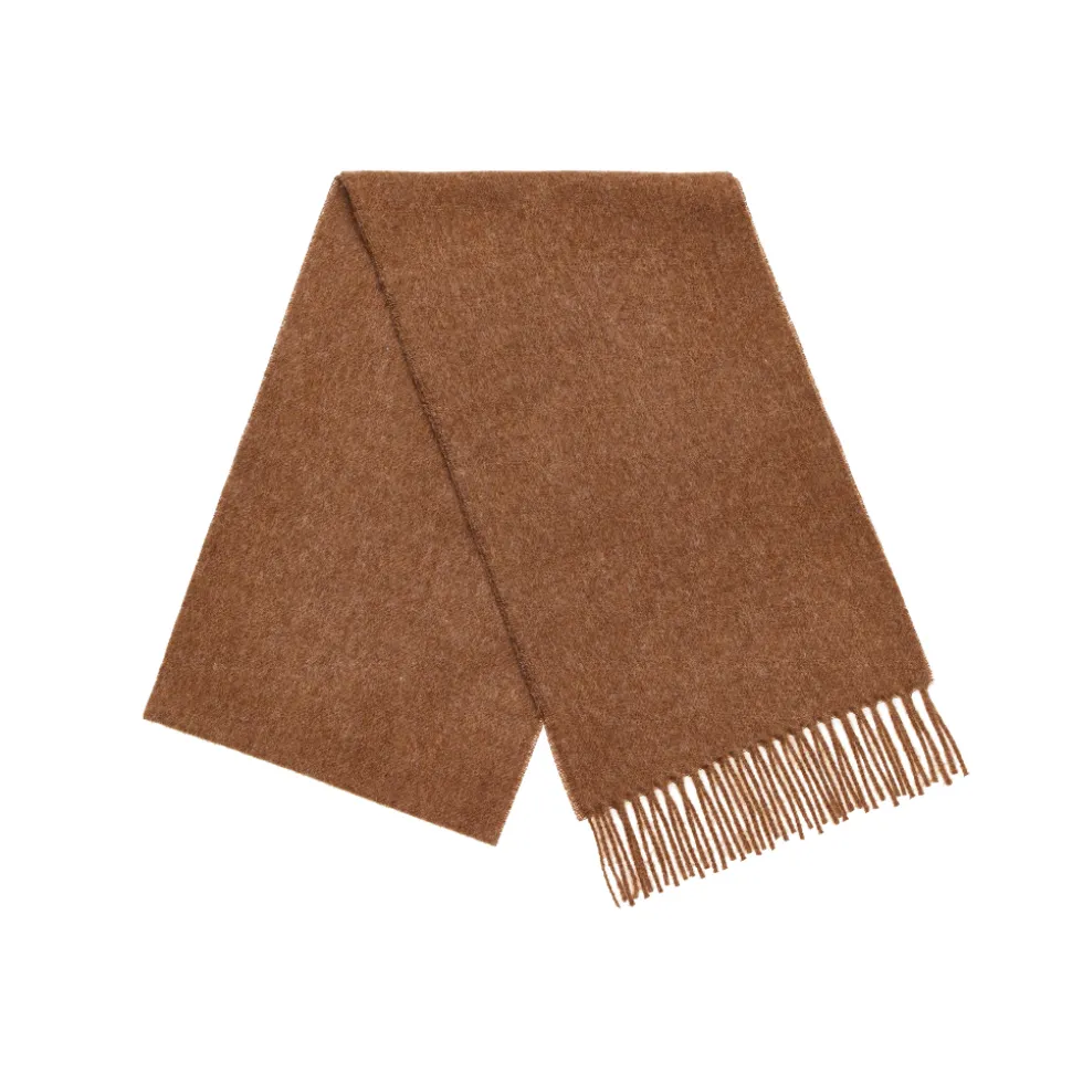 Deze warme shawl in een ontspannen, relaxed fit is perfect voor de koudere dagen. Gemaakt van zachte merino wol, biedt hij comfort en kwaliteit. De effen bruine kleur met subtiele franjes maakt het een veelzijdig kledingstuk dat moeiteloos combineert met iedere outfit.