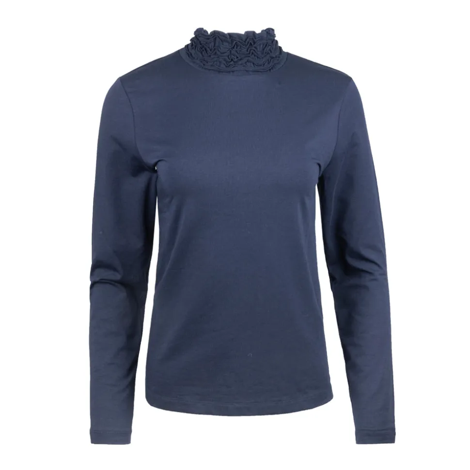 Shirt Turtle Frill is ideaal voor degenen die comfort en stijl willen combineren. Dit long sleeve shirt heeft een relaxed fit en een diepblauwe kleur die moeiteloos te combineren is. De kenmerkende frill-kraag voegt een speelse touch toe aan je look. Gemaakt van katoen stretch, biedt het zachte en ademende materiaal de hele dag door draagcomfort.