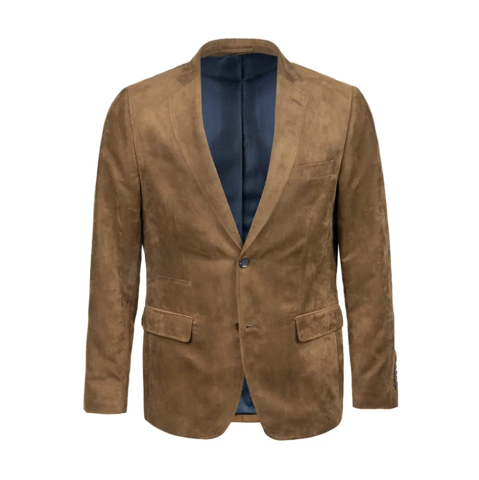 Suedine colbert biedt een relaxed fit en straalt elegantie uit met zijn bruine kleur. Gemaakt van zacht en soepel suedine, is dit kledingstuk perfect voor wie comfort zoekt. De nette revers en de sluiting met knopen geven het een klassieke uitstraling. Het materiaal zorgt voor een luxe gevoel zonder in te leveren op draagcomfort. De colbert heeft praktische zakken en subtiele details die het geheel compleet maken.