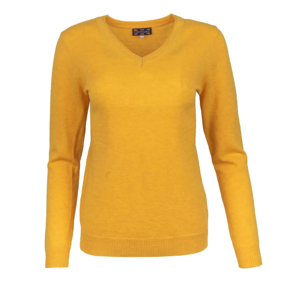 Geniet van comfort met de Sweater V-Neck van John Bardale. Deze warme gele trui, gemaakt van 100% lambswool, biedt een relaxed fit die natuurlijke bewegingen mogelijk maakt. De V-hals en geribde boorden zorgen voor een klassieke uitstraling, waardoor deze sweater eenvoudig te combineren is met andere kledingstukken in je garderobe.