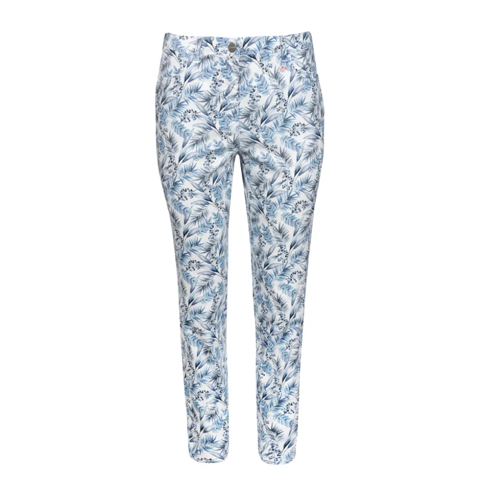Trousers Leafs bieden een frisse en natuurlijke look dankzij het levendige bladmotief in blauwtinten. Deze relaxed fit broek van Relaxed by Toni is gemaakt van comfortabel katoenstretch, wat zorgt voor een fijne bewegingsvrijheid. De subtiele knoopsluiting en rits maken het dragen eenvoudig en praktisch.