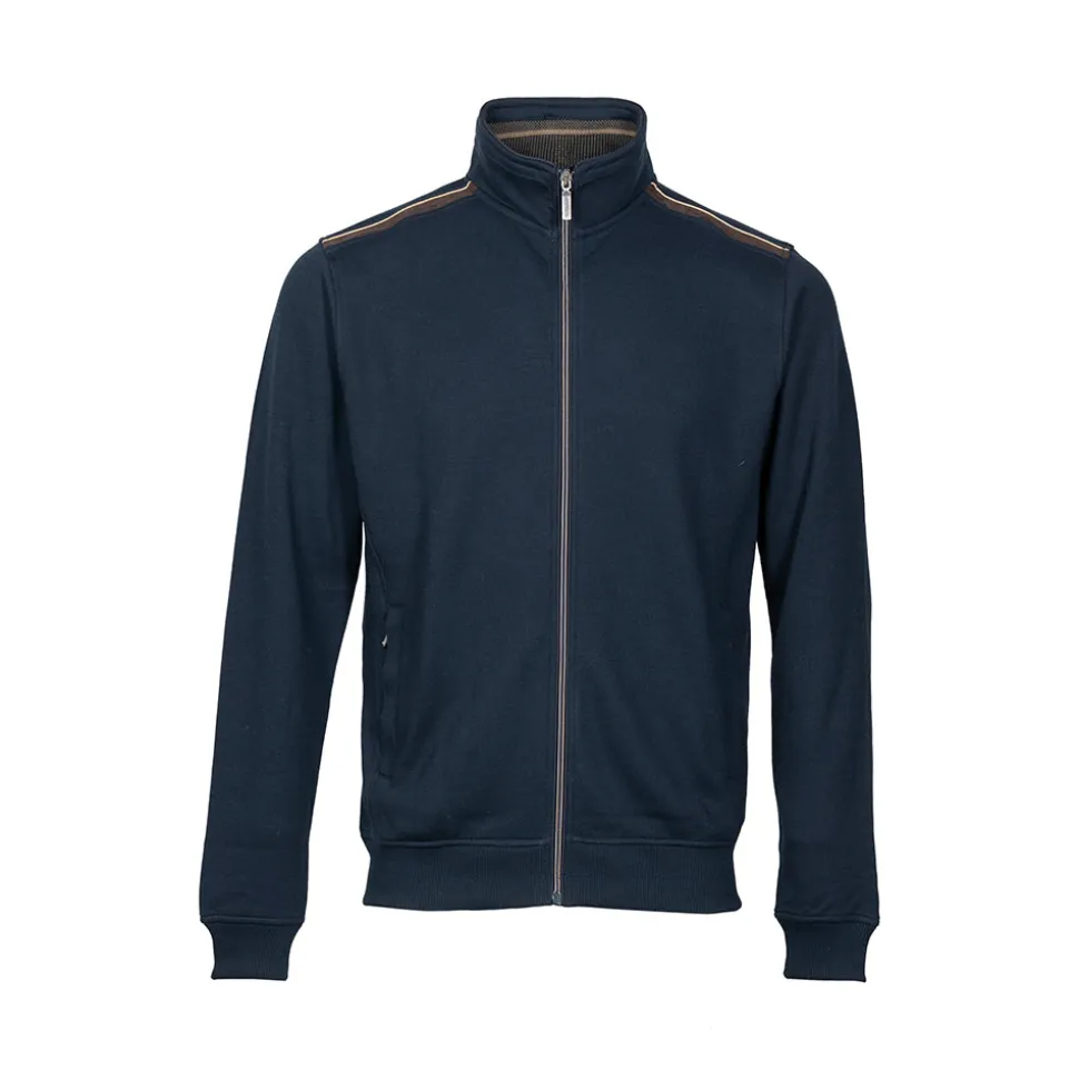 Ervaar comfort en veelzijdigheid met deze donkerblauwe zipped cardigan van John Bardale. Met een relaxed fit en een handige ritssluiting is dit kledingstuk ideaal voor dagelijks gebruik. Het katoen stretch materiaal biedt de perfecte balans tussen flexibiliteit en stevigheid, waardoor het prettig draagt in elke situatie. De subtiele details langs de schouders voegen een vleugje karakter toe aan het ontwerp.