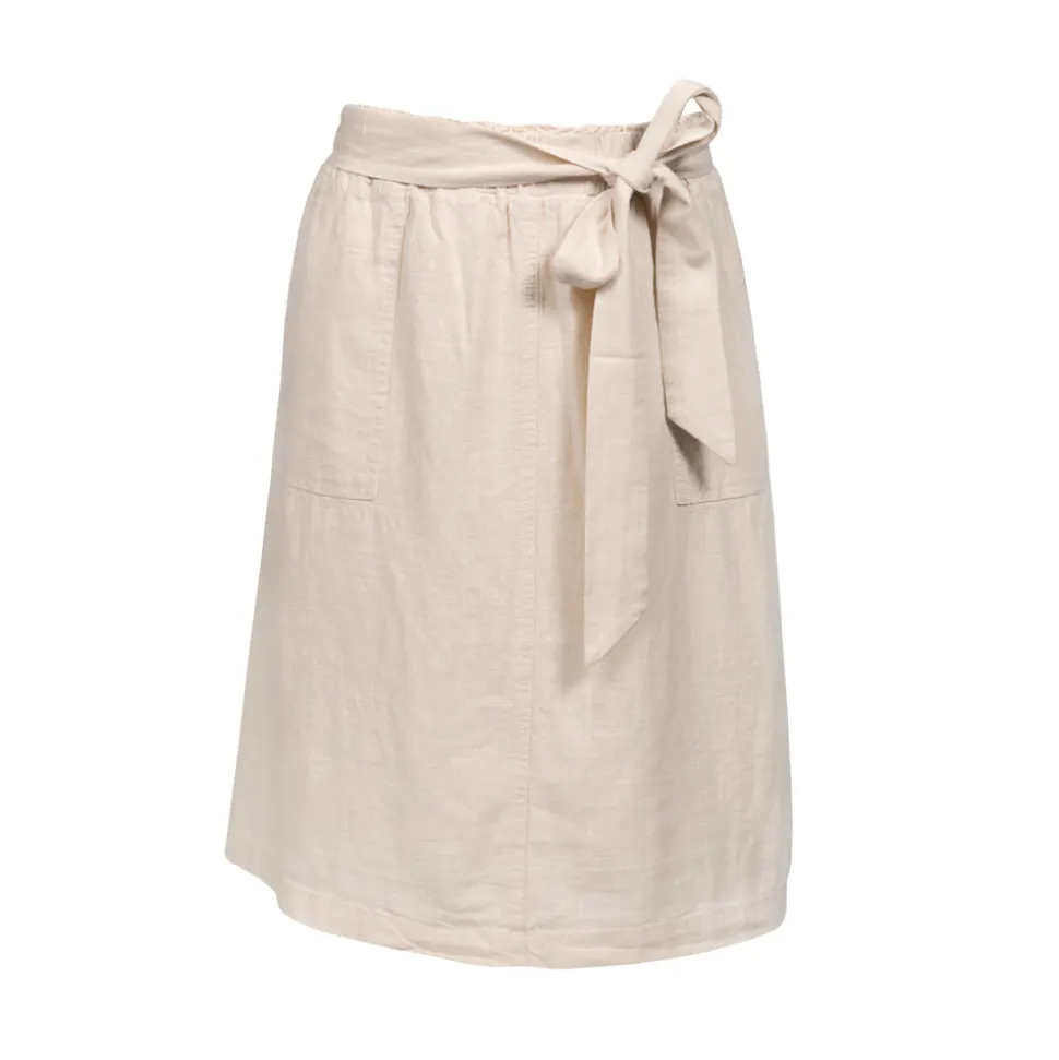 Deze prachtige A-line rok van Bloomings biedt een relaxed fit, perfect voor zomerse dagen. Gemaakt van luchtig linnen, houdt hij je koel en comfortabel. De zachte beige kleur en de strikband geven een elegante uitstraling. Twee praktische zakken maken het ontwerp compleet.