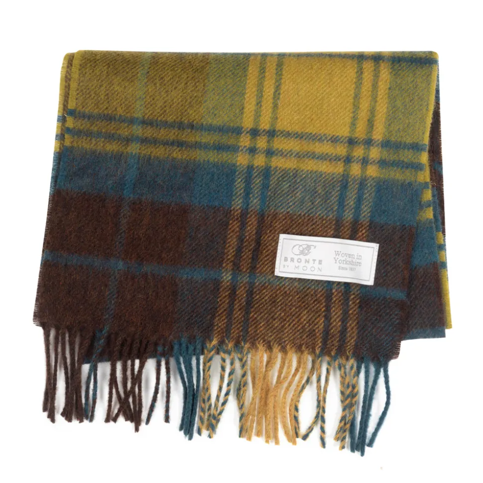 Ervaar comfort en warmte met de Briggate Mustard/Teal shawl van John Bardale. Deze shawl, in een kleurrijk ruitpatroon van mosterd en teal, biedt een relaxed fit en is perfect voor koelere dagen. Gemaakt van 100% lamswol, zorgt de zachte en ademende textuur voor een aangename drapering en houdt je heerlijk warm. De franjes geven een speelse touch aan dit kledingstuk.
