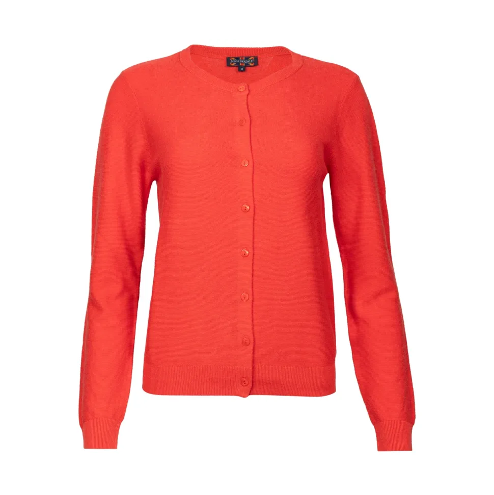Cardi Combed Cotton voegt een vleugje comfort en stijl toe aan je dagelijkse avontuur. Deze relaxed fit cardigan in een levendige oranje tint is gemaakt van 100% katoen, zacht en ademend voor elke dag. De klassieke ronde hals en knoopsluiting geven het kledingstuk een tijdloze uitstraling, terwijl de fijne ribboorden voor een goede pasvorm zorgen.