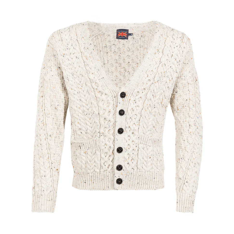 De Cardigan Aran van John Bardale biedt comfort en stijl met zijn relaxed fit. Het geweven patroon in een warme beige tint en de stevige knoopsluiting maken het een tijdloos kledingstuk. Gemaakt van zachte Merino wol, biedt deze cardigan warmte en zachtheid. De ribgebreide boorden en V-hals voegen extra details toe voor een klassieke look.
