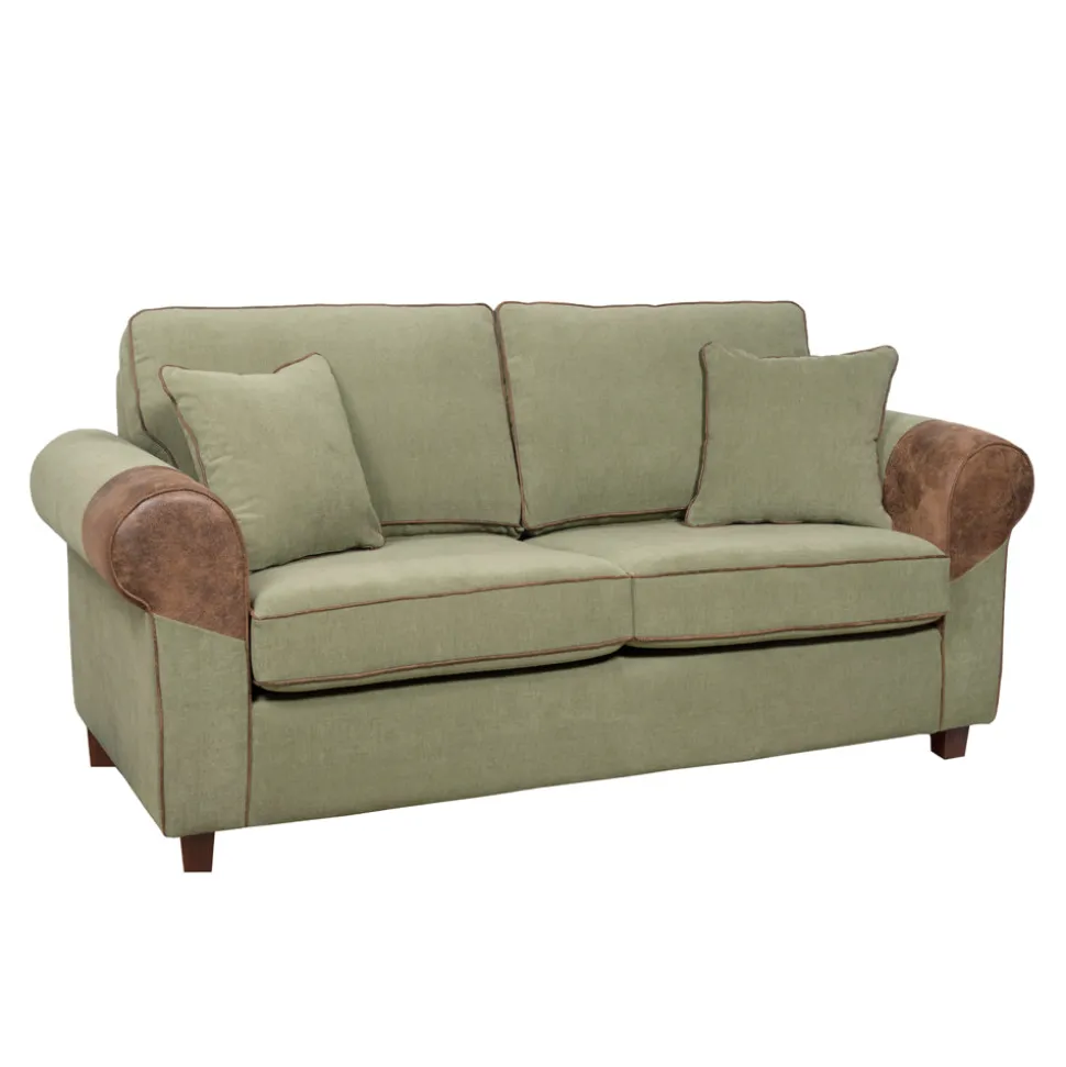 De Dublin 2,5-zits M72 van John Bardale is een eyecatcher in zachtgroen met verfijnde piping. De Mystic stof is niet alleen vlek- en vuilafstotend maar ook oersterk en beschikbaar in meer dan 50 kleuren. De donkerbruine manchetten zijn gemaakt van artificial leather Gobi, wat het meubelstuk een elegante uitstraling geeft. Met een breedte van 208 cm, uitneembare zit- en rugkussens, totale diepte van 88 cm, zitdiepte van 52 cm en zithoogte van 45 cm, biedt deze bank optimaal comfort. Leverbaar in alle stoffen, meer info in de winkel.