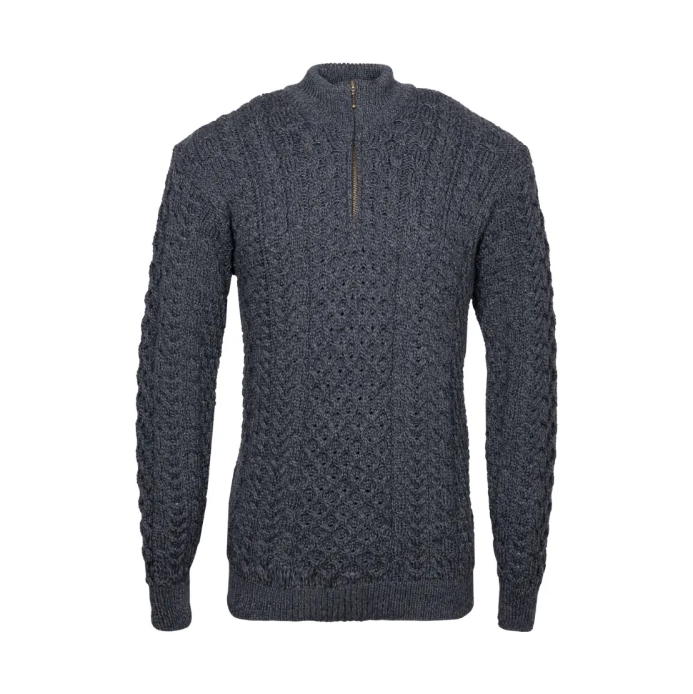 Ervaar comfort en kwaliteit met de luxueuze Half zip Aran cardigan van John Bardale. Dit kledingstuk in een rijke donkergrijze kleur heeft een relaxed fit en is gemaakt van zachte Merino wol. Met een gedetailleerd Aran-patroon en praktische halve rits biedt het zowel stijl als warmte. Perfect voor avonturen in de natuur of ontspannen momenten thuis.
