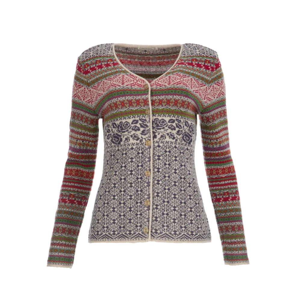 Jacquard Short Cardigan van John Bardale combineert comfort met een karakteristiek design. Deze cardigan heeft een relaxed fit met een rijke mix van kleuren zoals rood, groen en blauw. Gemaakt van een hoogwaardige katoen/wol mix, biedt het zowel warmte als ademend vermogen. De knoopsluiting voegt een praktische touch toe terwijl de gedetailleerde jacquardpatronen een unieke esthetiek geven.