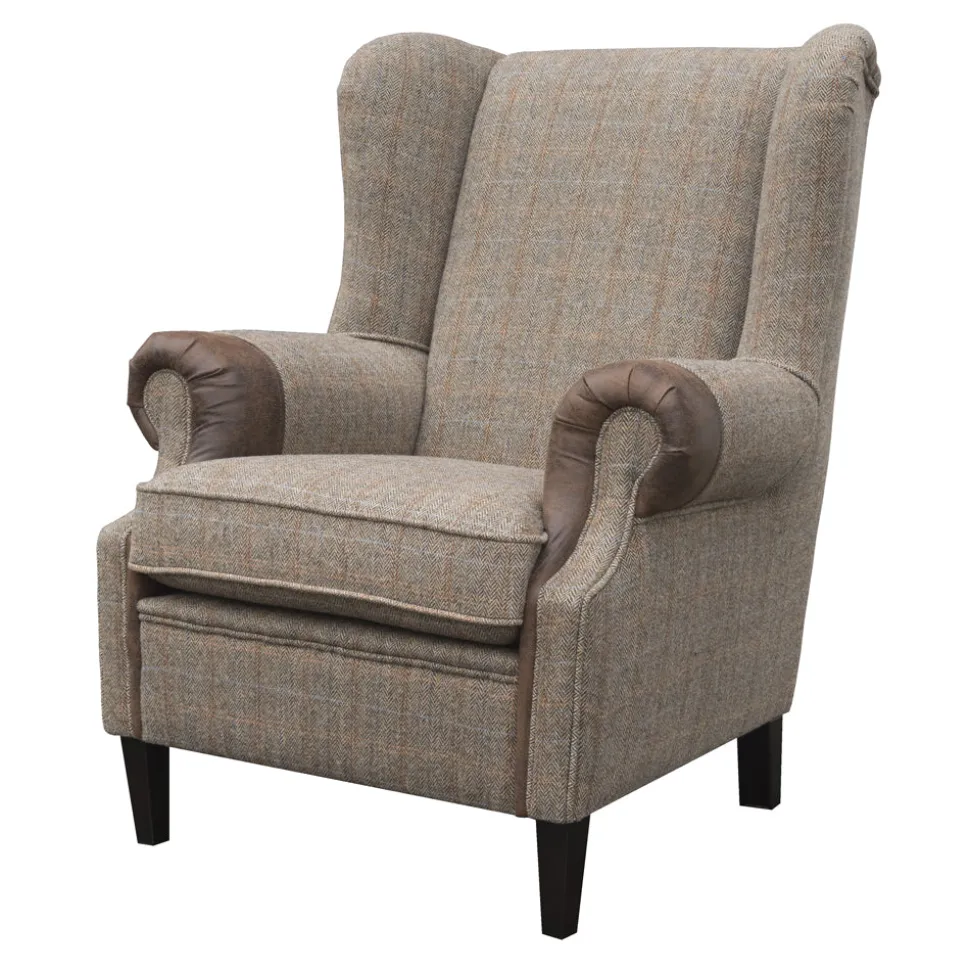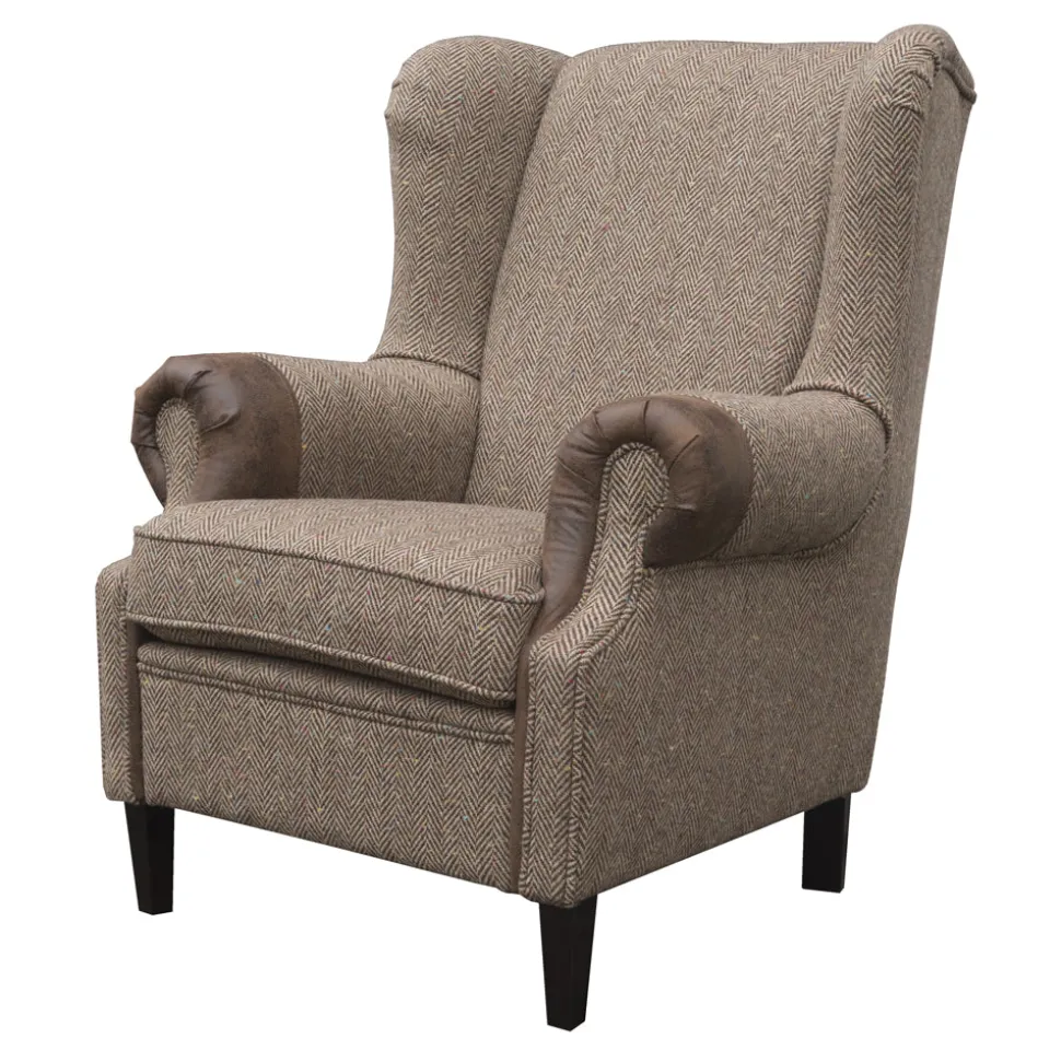 Kent XL Harris Tweed L002H biedt stijlvol comfort met zijn bruin haringgraatpatroon en luxe Harris Tweed bekleding. De manchetten zijn uitgevoerd in artificial leather Gobi, wat zorgt voor een elegante uitstraling.