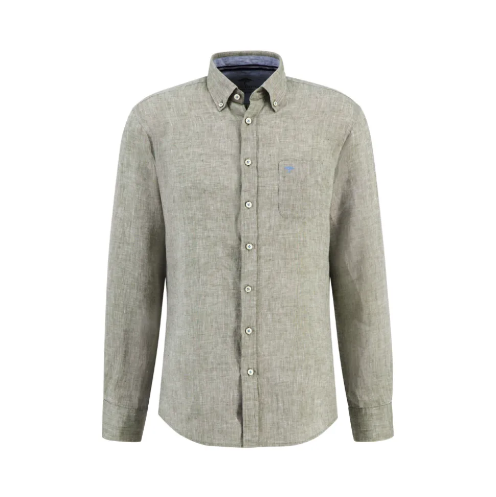 Ervaar het comfort van de Linen shirt met lange mouwen, aangeboden door Fynch Hatton. Deze relaxed fit blouse in een natuurlijke groentint biedt een ademend draagcomfort dankzij de hoogwaardige linnenmix. Een nette button-down kraag en subtiele knoopsluiting geven deze blouse een tijdloze uitstraling, perfect voor elke tocht in de buitenlucht.