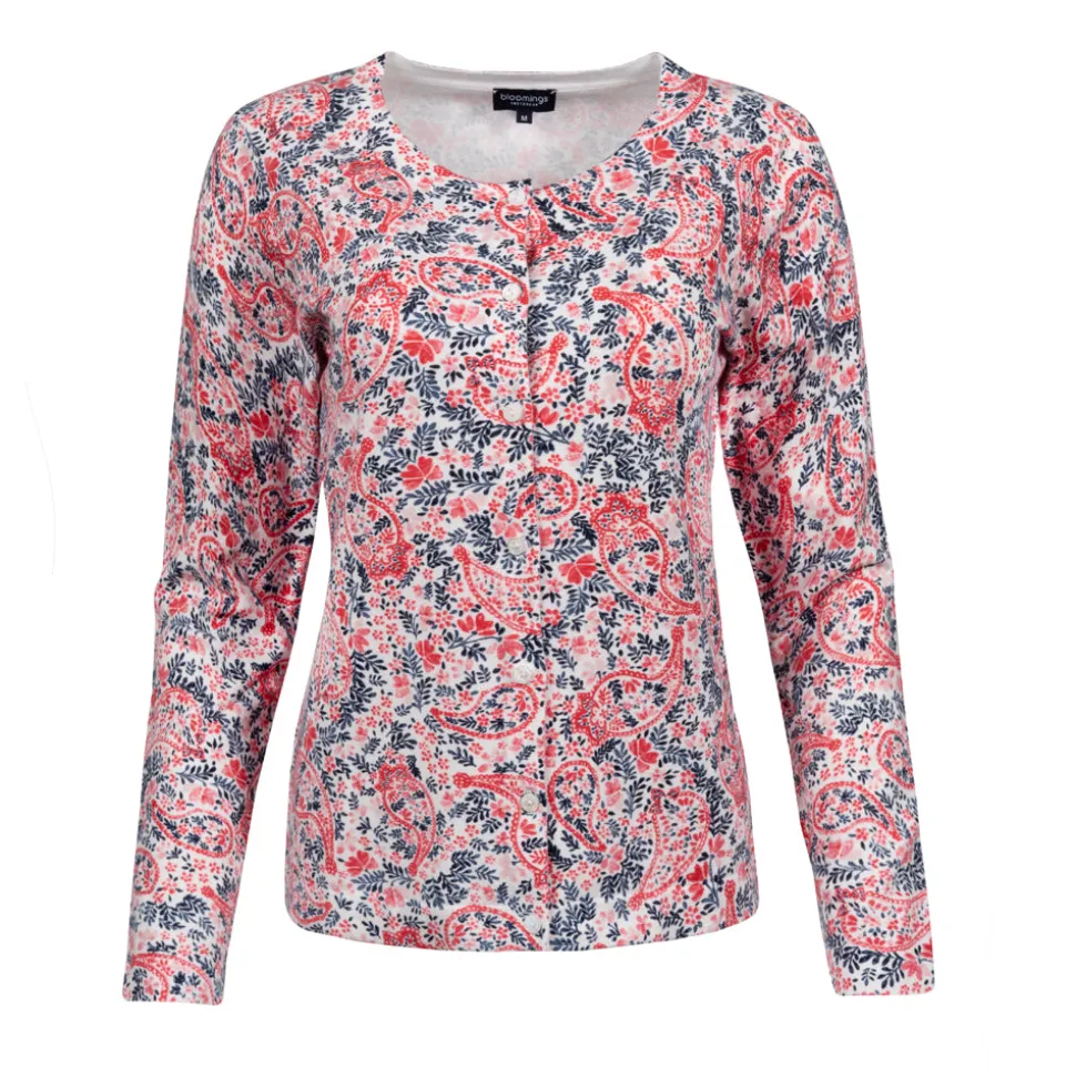 Breng kleur in je garderobe met de Paisley Cardigan van Bloomings. Deze relaxed fit cardigan heeft een levendige rode en blauwe paisleyprint die direct opvalt. Gemaakt van 100% katoen, biedt het ademend comfort tijdens je avonturen in de natuur. De cardigan heeft lange mouwen en een ronde halslijn voor extra warmte en stijl op koelere dagen.