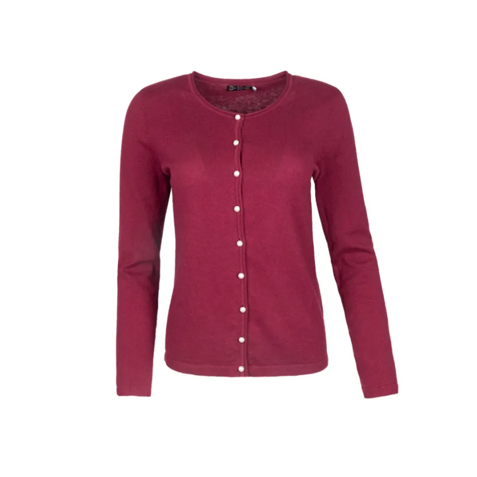 Pearl cardi woolmix biedt een warme omhelzing met zijn relaxed fit en elegante bordeauxrode tint. Gemaakt van een zachte wool mix, voelt deze cardigan comfortabel aan voor elke buitenavontuur. De subtiele parelknoopsluiting en ronde hals zorgen voor een klassieke uitstraling. Perfect voor wie houdt van comfort en stijl onderweg.