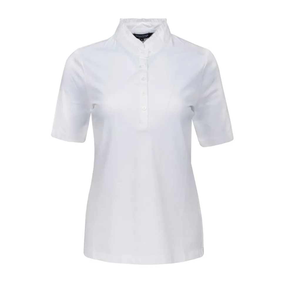 Voel je comfortabel en zelfverzekerd met de Polo Stand Up van Bloomings. Deze klassieke witte polo heeft een relaxed fit en een unieke staande kraag met knoopsluiting. Gemaakt van 100% katoen, biedt het ademend vermogen en zachtheid, perfect voor avonturen in de buitenlucht. De korte mouwen en subtiele afwerking maken dit kledingstuk een praktische keuze voor dagelijks gebruik.