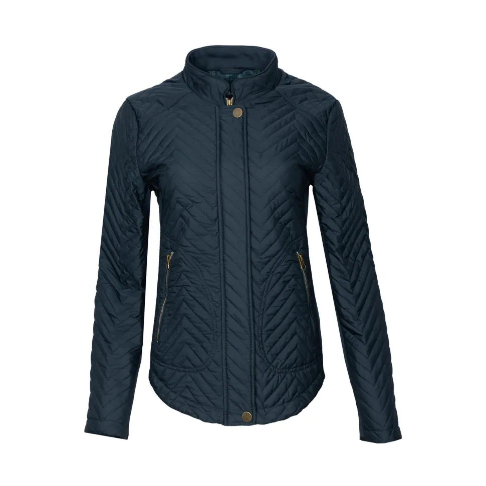 De Quilted jacket Freya biedt een relaxed fit en is ideaal voor liefhebbers van buitenactiviteiten. Het subtiele doorgestikte patroon zorgt voor extra stijl en comfort. Deze jas is uitgevoerd in diep marineblauw en gemaakt van een stevige, lichtgewicht stof die je warm houdt tijdens frisse dagen. De hoge kraag en rits met gouden drukknoopdetails geven het geheel een elegante uitstraling.