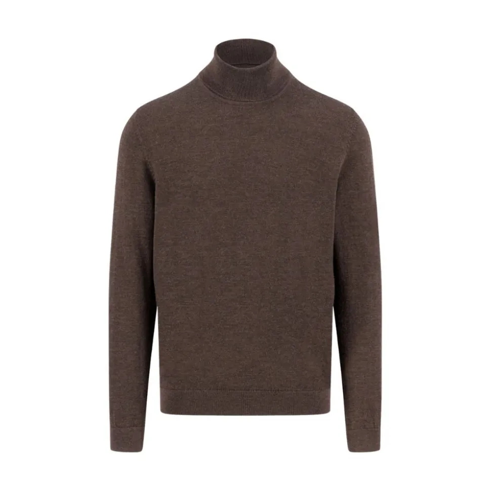 Deze bruine rollneck trui biedt een relaxed fit voor optimaal draagcomfort. Gemaakt van hoogwaardig merinowol, zorgt deze trui voor een zacht en warm gevoel, ideaal voor frisse dagen buiten. De subtiele ribboorden en klassieke rolkraag voegen een tijdloze touch toe die moeiteloos te combineren is met andere kledingstukken.