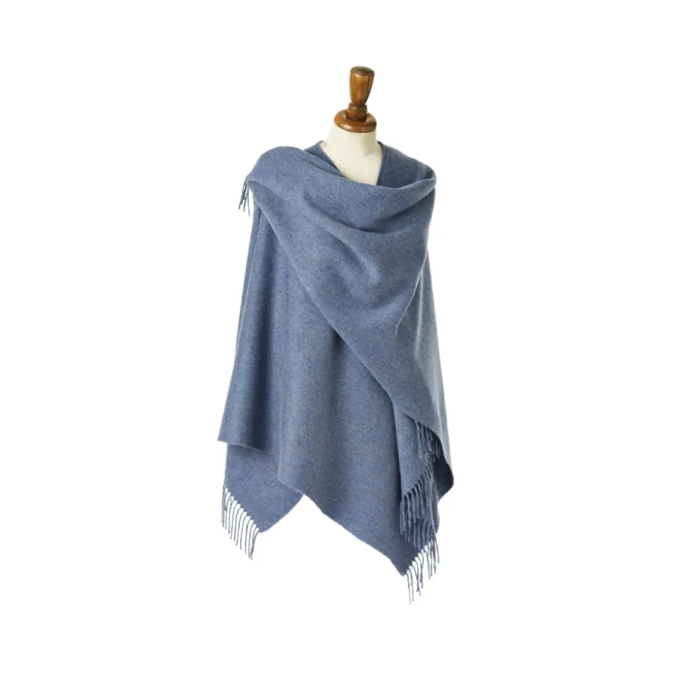 Geniet van comfort en stijl met deze lichtblauwe Ruana met relaxed fit. Gemaakt van zachte Merino wol, biedt dit kledingstuk warmte en een fijn draaggevoel. Het eenvoudige ontwerp is perfect voor een wandeling in de natuur of een ontspannen middag in de tuin. De subtiele franjes geven een vleugje elegantie mee.