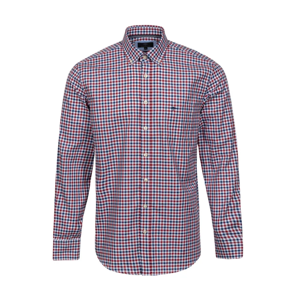 Dit long sleeve overhemd van Fynch Hatton valt op door zijn tijdloze rood-wit-blauwe ruitpatroon. Het biedt een gedetailleerde button-down kraag en een klassieke knoopsluiting. Gemaakt van 100% katoen, zorgt het voor een aangenaam comfort en een relaxed fit. Het zachte materiaal houdt je fris tijdens lange dagen buiten.