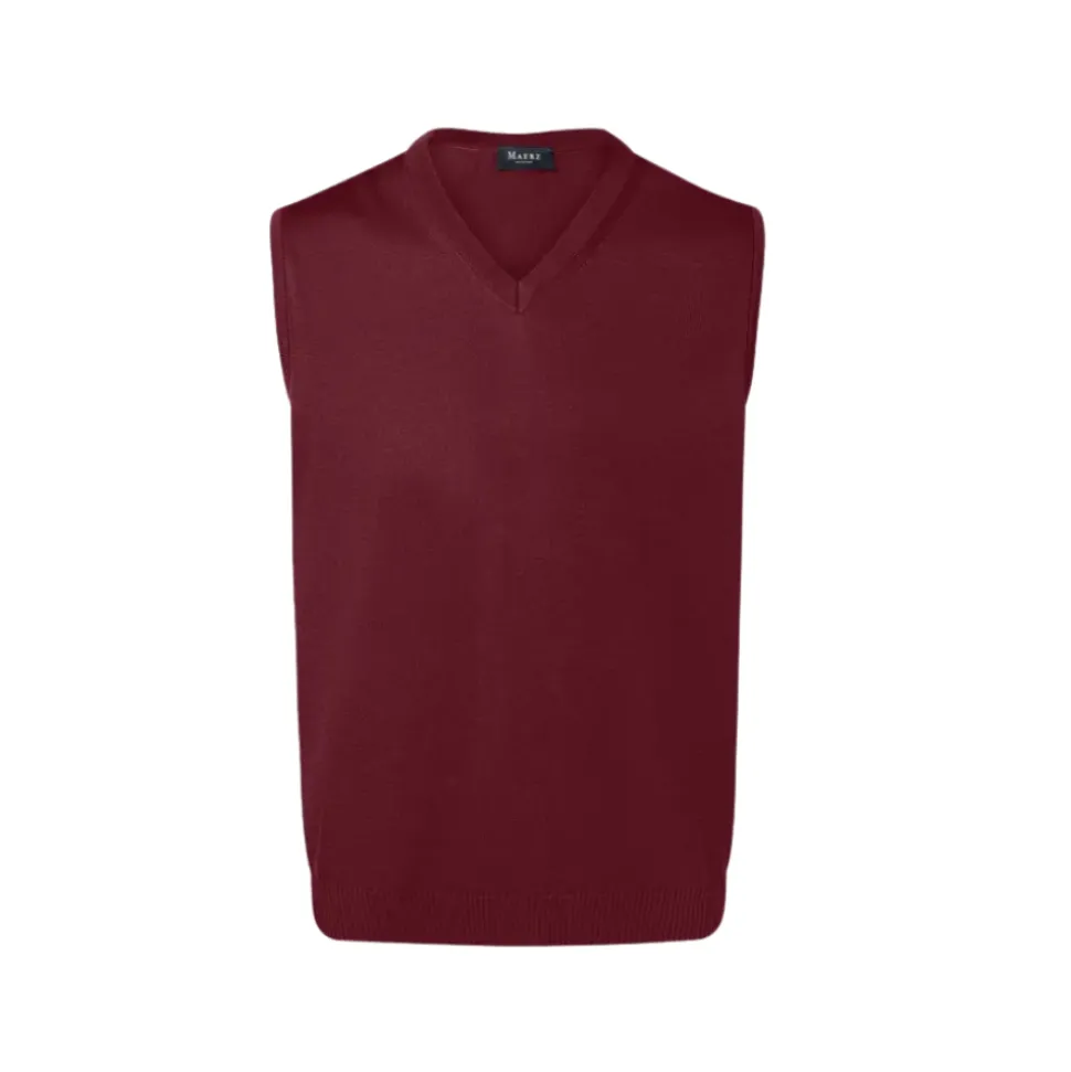 Deze fijne slipover van Maerz in een warme bordeauxrode kleur is de ideale aanvulling op je garderobe. Gemaakt van hoogwaardige virgin wool, biedt deze slipover een heerlijk zachte touch en uitstekende warmte. De relaxed fit en subtiele V-hals maken het een comfortabel kledingstuk dat makkelijk te combineren is met diverse lagen. De elastische boorden zorgen voor een goede pasvorm, waardoor je je vrij kunt bewegen tijdens je favoriete buitenactiviteiten.