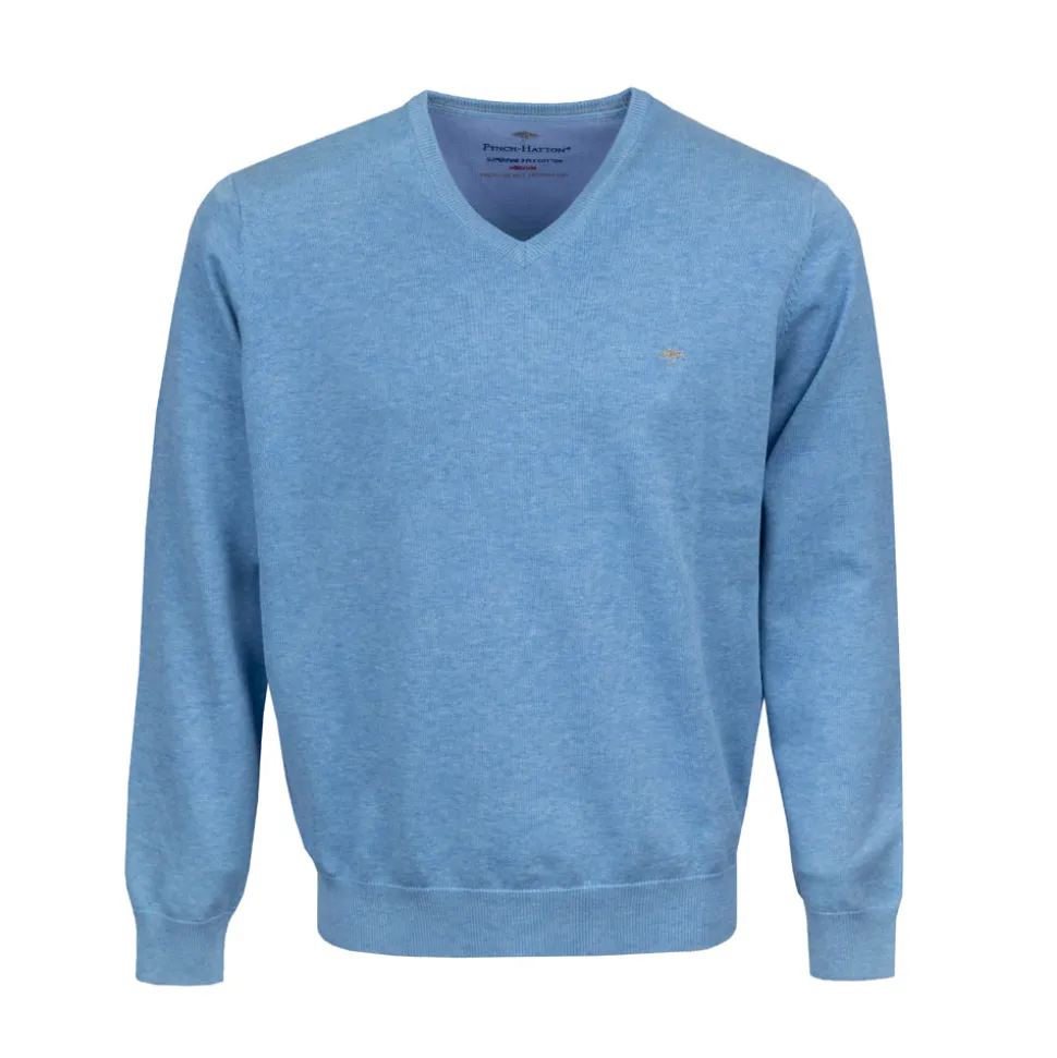 Deze comfortabele blauwe sweater is een ideale keuze voor wie houdt van eenvoud en kwaliteit. De V-hals en relaxed fit zorgen voor een tijdloze uitstraling. Gemaakt van 100% katoen, biedt deze sweater een zachte en ademende ervaring. De subtiele boorden en de lichte structuur geven het geheel een verfijnde look.