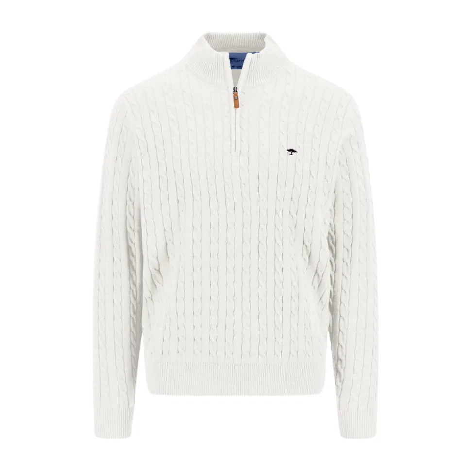 Troyer zip cable is perfect voor wie houdt van comfort en stijl. Met een relaxed fit en een verfijnd kabelpatroon biedt deze trui moeiteloze warmte. De halve rits voegt gebruiksgemak toe, terwijl de crèmekleurige tint een tijdloze uitstraling geeft. Gemaakt van 100% katoen, voelt de stof zacht aan op de huid en zorgt hij voor natuurlijke ademhaling.