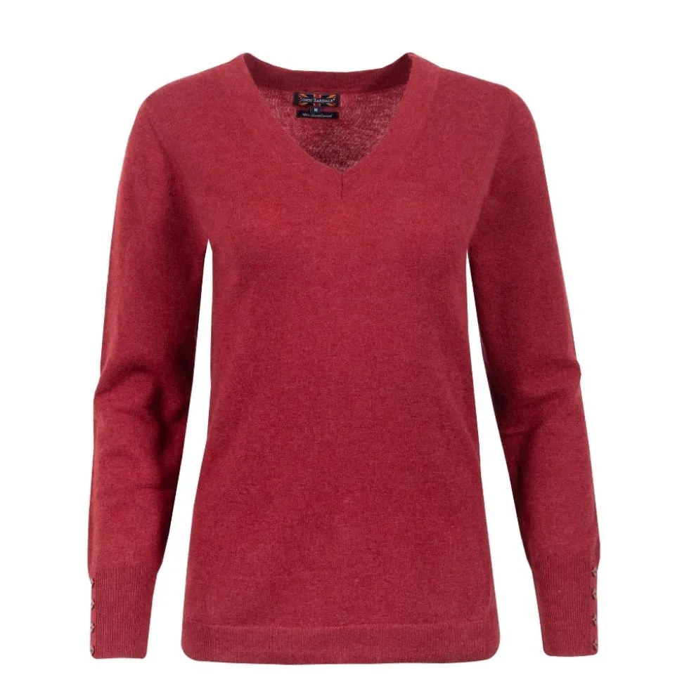 Deze prachtige V-neck pullover van John Bardale in een warme rode tint biedt een relaxed fit en is gemaakt van 100% fijne lamswol. Het zachte materiaal zorgt voor comfort en warmte tijdens koelere dagen, terwijl de subtiele V-hals een vleugje elegantie toevoegt. De boorddetails maken het ontwerp compleet.